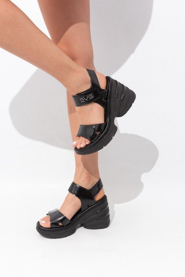Sandalias de cuero ecológico, originales SAVAGE , plataforma de 3 a 8 cm aprox.